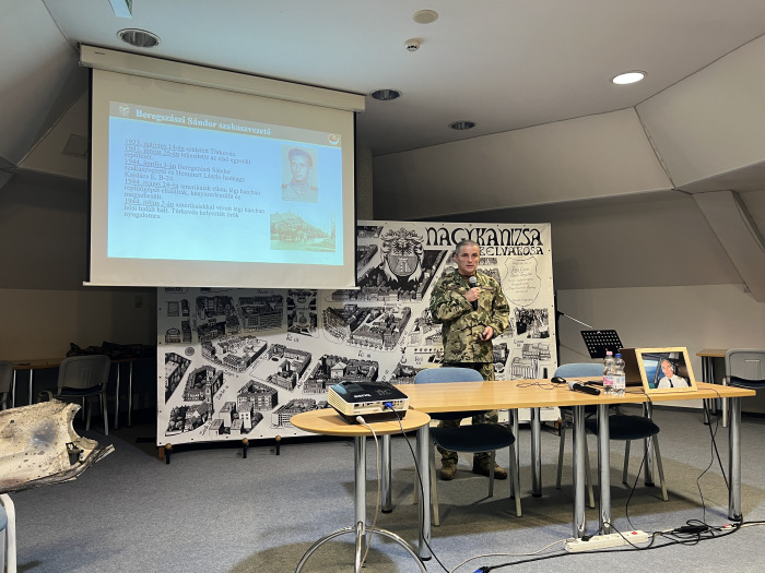 A Magyar Honvédség Kiss József 86. Helikopterdandár zászlósa általánosságban mesélt a témáról, majd részletesen ismertette egy ME 109-es vadászrepülőgép kiemelésének történetét, amelyet 2023 októberében hoztak felszínre a Balatonból.