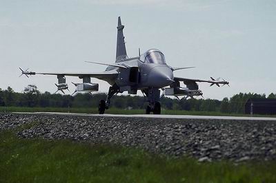 A kacsaszárnyak is fékezik a gépet leszálláskor, valamint a Gripen azon kevés gépek egyike, ami minden kerekével tud fékezni.