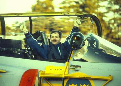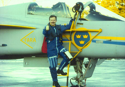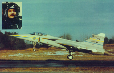 Milyen érzés volt Gripennel először repülni?Nos, egy hosszú és nagyon komoly munka beteljesedését jelentette nem csak számomra az első felszállás. Mint berepülőpilóta a napi munkám mellett részt vettem a Gripen arculatának kialakításában, a szimulátor kifejlesztésében. Természetesen itt rengeteget gyakoroltam is. Ezen kívül volt egy Viggen, aminek a vezérlését átalakították, hogy hasonlítson a Gripen repülési profiljára. Ezen a repülőgépen is sokat repülhettem. Egy berepülési program sohasem a felszállással indul, ezt megelőzik a gurulópróbák. Ezek során már eljutottunk odáig, hogy megemeltem az orrkereket is, de maga a gép még nem emelkedett el. Végül a svéd Honvédelmi Minisztérium engedélyezte az első felszállást.