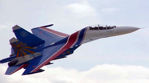 Az Orosz Lovagok Szu-27UB típusú gépe