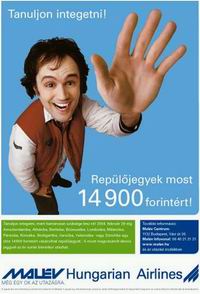 A Malév, új kampánnyal és új szlogennel jelentkezett. Alig egy hete meghirdetett legújabb akciójának is kedvező a fogadtatása utasaink körében. A „Tanulj integetni” kampány a jelenlegi összesítések alapján naponta több, mint ezer foglalást jelent. A célállomások listáját Amsterdam vezeti, majd London, Párizs, Athén és Brüsszel következik. A hirdetéseken, reklámfilmekben már az új szlogennel- Még egy ok az utazásra- jelentkezett a légitársaság.