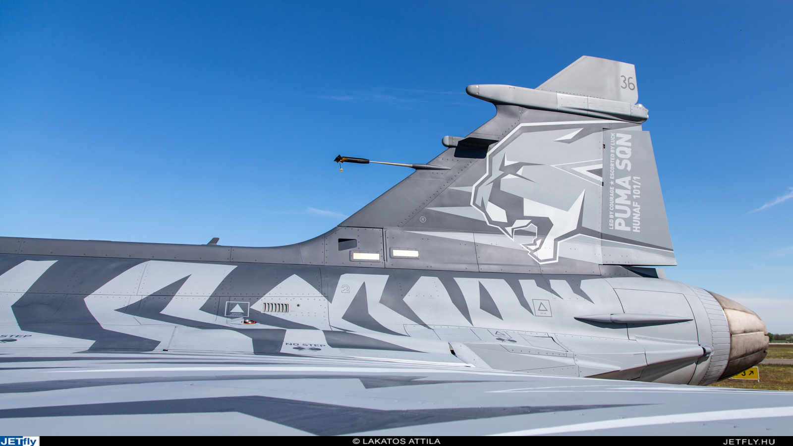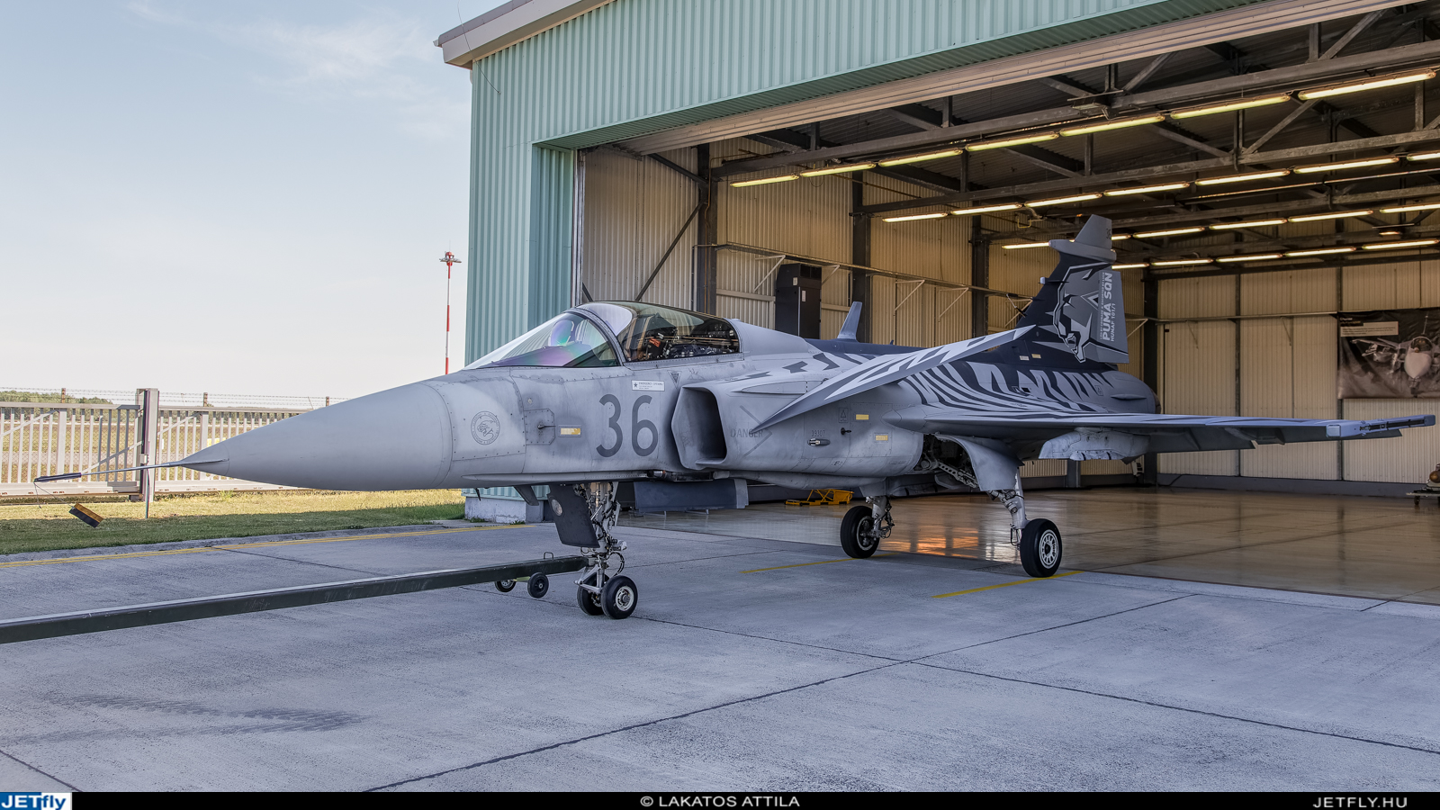 A mai esemény 9 órakor vette kezdetét a 8-as számú lefedésnél, ahonnan kivontatták a nap főszereplőjét, a 36-os oldalszámú JAS 39C Gripent. A flottában ez az első, teljes díszfestéssel ellátott példány, hiszen az eddig megszokott, függőleges vezérsíkon elhelyezett dekoráció mellett a gép törzsére, illetve a kacsaszárnyakra is került a tigriscsíkos mintából, kiválóan illeszkedve a Tiger Meet szellemiségéhez. A függőleges vezérsíkon az üvöltő pumafej modern változata köszön vissza ránk és természetesen nem hiányozhat róla a közel 90 éves múltra visszatekintő Puma Harcászati Repülőszázad jelmondata sem ("Led by courage, escorted by luck" = "Vezérünk a bátorság, kísérőnk a szerencse").