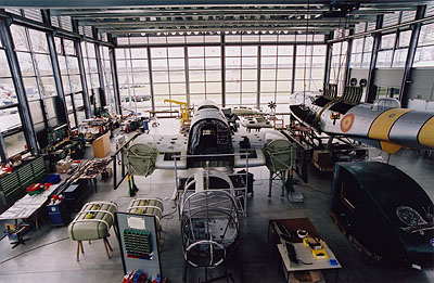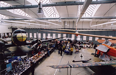 A hangárat körülölelő galérián kaptak helyet a makett és kiegészítő árusok. Az ismert gyártók termékein kívül hatalmas mennyiségben kínáltak igazi kuriózum készleteket is a kereskedők. A különböző mügyanta alkatrészeket és réz fotómaratásokat külön standokon árulták, hasonlóan a nívós szakirodalmakhoz. Sok termék a magyar árszínvonalnál olcsóbban cserélt gazdát, pedig mint tudjuk, a keresetek éppen fordítva alakulnak, a választékbeli különbségről pedig inkább ne is beszéljünk! Ha kigyönyörködtük magunkat a kiállított makettekben és elköltöttük az összes pénzünket érdemes tovább sétálnunk a múzeum épületében. Az emberi repülés kezdeteit bemutató szemléletes modellek és replikák megtekintése után egy nem mindennapi élményben lehet részünk. Betekinthetünk egy restaurátor mühelybe, ahol éppen egy spanyol felségjelü hidroplánt és egy Heinkel-111-est varázsolnak újjá a szakemberek. Hosszú évek kitartó munkája és komoly anyagi ráfordítás eredménye lesz egy-egy gyönyörüen helyreállított múzeumi példány vagy repülőképes oldtimer.
