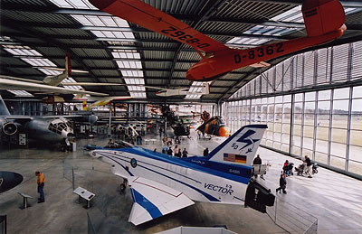A múzeum legnagyobb, egybefüggő kiállítóterét adó fő hangárat már a katonai gépek uralják. Amíg a sportgépek a játékos formáikkal és élénk színeikkel vonják magukra a tekintetet, addig a harci gépek és helikopterek inkább különleges, erőtől duzzadó megjelenésükkel kápráztatják el a szakértőket és laikus érdeklődőket egyaránt. A lengyel MiG-15-ös feladata egykoron talán éppen a Luftwaffe elleni harc lett volna, most viszont békésen pihen a néhai ellenfelek társaságában. A különleges formájú, csupa üveg orrú Dornier Do-31-es leginkább kardhalra hasonlít, az árnyékában szerényen meghúzódó VAK-191-ről pedig ki gondolná elsőre, hogy korának egyik legígéretesebb, helyből felszállni képes repülőgépe volt. Láthatjuk még a rendkívül szép vonalú, kecses X-31-est, melyet az amerikaiak és a németek közösen alkalmaztak a tolóerővektor-szabályozási kísérletek során.