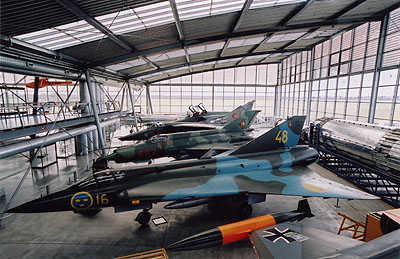 A fő hangár túlsó feléből nyílik a múzeum legtávolabbi szárnya, melyben vérbeli harci gépek sorakoznak. A vietnámi háborúban debütáló amerikai F-4 E Phantom mellett a Varsói Szerződés nyugati bástyáját jelentő NDK egykori harci gépei láthatóak. A lapos orrkiképzésü MiG-23 BN Flogger átmenetet képezett a csapásmérésre optimalizált MiG-27-es és a vadász feladatkörü MiG-23-as között. Nagy számban rendszeresítette ezt az alváltozatot az NDK és Csehszlovákia légiereje is. A MiG-21-est valószínüleg senkinek sem kell bemutatni, a hidegháborús évtizedek talán legismertebb szovjet gyártmányú vadászgépét ezúttal a Kelet-Német Néphadsereg felségjelével láthatjuk, kiváló állapotban. Meg kell még említeni a svéd Saab Draken-t is, mely bár kevesebb ismertségre tett szert, mint a Phantom vagy a Fishbed, a maga korában kiemelkedő képességekkel rendelkezett, aerodinamikai szempontból pedig előremutató irányt képviselt. Ebben a hangárban van kiállítva a német-indiai koprodukcióban fejlesztett Marut vadászbombázó, mely sok társához hasonlóan nem jutott túl a prototípus állapoton. A Lockheed F-104 Starfighter viszont komoly karriert futott be a Luftwaffe kötelékében, egyes példányai a ’90-es évek közepéig szolgálatban maradtak. Itt egy kétüléses példányt tekinthetünk meg, mely kiképző és gyakorló feladatkörben teljesített szolgálatot.