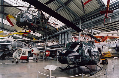 A helikopterek kedvelői sem fognak csalódni, hiszen láthatnak többek között Westland, Bell és Kamov gyártmányokat is. A legérdekesebb talán az a kutató-mentő feladatkörben alkalmazott tengerészeti Wessex helikopter, melynek farok-részét és rotorlapátjait a hajófedélzeti tárolásnak megfelelően, becsukott helyzetben rögzítették a kiállítást berendező szakemberek. Az egykori NDK örökségéből származó Kamov Ka-26-os viszont leginkább a növényzetet pusztító kártevők elleni harcban szerzett elévülhetetlen érdemeket. Ebben a csarnokban is láthatunk vitorlázógépeket a tetőszerkezetről lelógatva, melyek élettel töltik meg a hatalmas hangár légterét.
