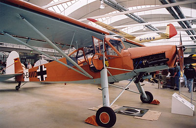 Az észak-afrikai fronton alkalmazott, sivatagi festésü Fieseler Fi-156 Storch futár-, és sebesültszállító repülőgép.