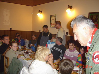 A vendéglátók erre az alkalomra időzítették az évadzáró bulijukat is. Sajnos a Góbék már a hangárban szétszedve várták a téli ápolást, de azért nem maradt senki sem repülés nélkül. Majdnem egész nap gyártotta a köröket a Dimona, ami kicsit motoros, kicsit vitorlázó. A kecskemétiek kihasználták a lehetőséget, hiszen ők sohasem vihetik el a családtagjaikat egy kis repkedésre. Repültek a feleségek, (ez volt a sárkányeregetés) és persze repültek a gyerekek is. Kicsit megérezhettek valamit abból, amiért oly sokszor kell egyedül maradniuk, hiszen „Apa dolgozik”. Volt néhány hely az An-2-esben is, amiből az ejtőernyősök ugrottak, sőt volt egy meglepetés is. Az ejtőernyősök felajánlottak egy tandemugrást 3000 méterről. A pilóták természetesen nem vesztek össze a lehetőségen, de a gyerekek közül volt jelentkező.