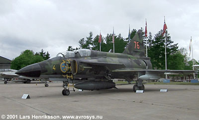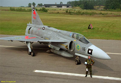 JA 37 Viggen - ADVA Viggen típus utolsó fejlesztése volt a JA 37, vadász változat. A fejlesztés munkálatai az 1970-es évek elején kezdődtek, első repülését 1974. szeptember 27-én hajtotta végre.Az első, sorozatban gyártott JA 37 - 37301 lajstromszámmal - 1977. november 4-én emelkedett levegőbe és rögtön rendszerbe is állították. Azt a verziót alkalmazták a későbbiekben, mint tesztrepülőgépet; pl. a kompozit függőleges vezérsík tesztelésére. A JA 37 radarja az Ericsson által gyártott PS-46/A doppler-radar volt, amely több cél egyidejű követésére képes.A JA 37 több alkalommal került módosításra. Az első gép 1980-ban került az F13-as ezredhez Norköpingbe.