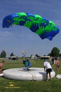 Az első két nap időjárása kegyes volt a versenyzőkhöz, akik a szolnoki MH 86. „Szolnok” Helikopter Ezred Mi-8-as helikopterének fedélzetéről lendültek neki ejtőernyőikkel, hogy a taszári sportpályán felállított versenymatracon minél pontosabban találják el a hegyesre faragott sarkukkal az érzékelőt. Ilyenkor ugyanis centimétereken múlik a győzelem. A pénteki és szombati nap ugrásai után már értékelhető volt a verseny és késő délután megkezdődhetett az igazi küzdelem...