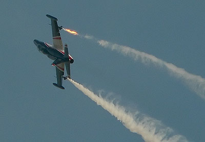 Az L-159B egyik smokewindere a bemutató közben kicsit égett, de rövid idő alatt kialudtak a lángok.