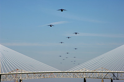 A nem mindennapi repülésben a 437. és a 315. szállítórepülő ezredek gépei vettek részt, melyek egyébként egy alacsony magasságú teher ledobási hadgyakorlaton bizonyítják képességeiket. A Charleston légibázison állomásozó C-17-esek kezdettől fogva részt vesznek a terrorizmus elleni harcban, az amerikai fegyveres erők megnövekedett légi szállítási igényeinek kielégítésében hárul rájuk fontos feladat. A Globemasterek kötelékrepülési rekordját eddig a McChord légibázisról felszálló 15 darab gép tartotta.
