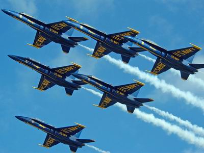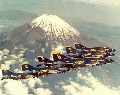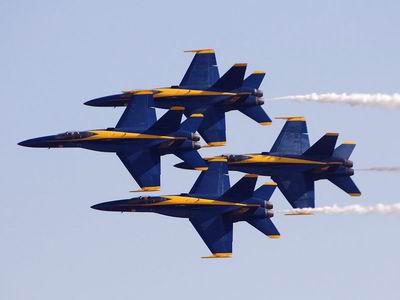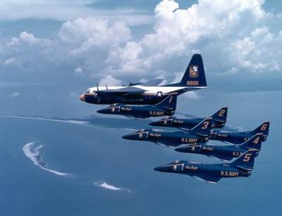 Az 1946. áprilisában Nimitz tengernagy parancsára létrehozott „Blue Angels” a maga 60 éves történetével a világ legrégebb óta müködő katonai formációja. Jóllehet képeken, videofelvételeken számtalanszor láthattuk már őket, eddig csupán öt bemutató-sorozatot tartottak Észak-Amerikán kívül. Tudniillik a szomszédos Kanadában 1956 óta gyakori vendégek.