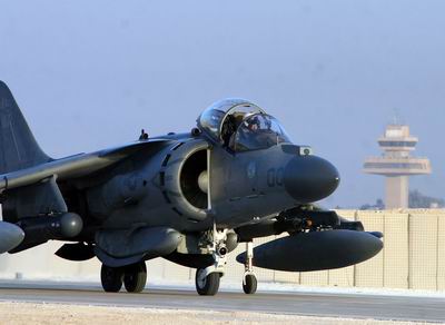 William R. Sauerland őrnagy az amerikai tengerészgyalogság 223. támadó századának pilótája gurul gépével a hangárok felé.