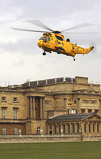 Február 15-én a RAF egyik Sea King típusú, kutató/mentő helikoptere a Buckingham Palota felett lebegve keltett szenzációt. A londoniak megszokták már, hogy arrafelé - bizonyos évfordulókon - katonai gépekből álló kötelékek húznak át alacsonyan. Olyan gépet azonban, amelyik le is szállt a királyi rezidencia parkjában, csak elvétve láthattak.