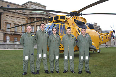 A 22. kutató/mentő század B rajának forgószárnyúja ez alkalommal nem valamilyen szerencsétlenség miatt tünt fel. Az élénksárga helikopter arra a fogadásra volt hivatalos, melyet a tavaly nyáron, Londonban elkövetett bombamerényletek utáni mentésben résztvevők tiszteletére adtak.