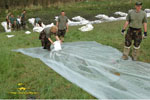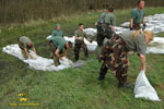 A gátakon nemcsak a repülőeszközökkel vesznek részt a légierő alakulatai a nem mindennapi munkában: a kritikus helyeken kecskeméti és szolnoki repülő-müszaki szakemberek, vadász- és helikopterpilóták, valamint a kecskeméti és szolnoki bázis szakemberei, katonái pakolják a homokzsákokat, építik a védvonalakat.