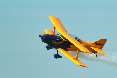 Június 5. hétfõ:-Ejtőernyős extrém ugrások -Fk-12 és Fk -14 légiharc imitáció bemutatója -Cessna-150 bemutató repülése -Repülőgépes lufivadászat és ügyességi bemutató -Enstrom-28 helikopter bemutató repülése -Hőlégballon repülése -Veres Zoltán mürepülő Európa-bajnok bemutatója-Besenyei Péter mürepülő világbajnok bemutató repülése