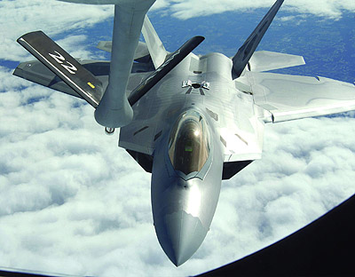 Légi utántöltés közben a US Air Force legmodernebb harci gépe, az F-22A Raptor