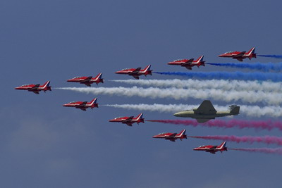 A zárókötelékben a Red Arrows ék alakban érkező, tüzpiros Hawk gépei az idén júliusban kivonásra kerülő Canberra PR.9-es felderítőt vették közre. Az 55 esztendős szolgálat után nyugdíjba vonuló típus eredetileg bombavetőnek készült. Utoljára Irak és Afganisztán légterében hajtott végre bevetéseket.
