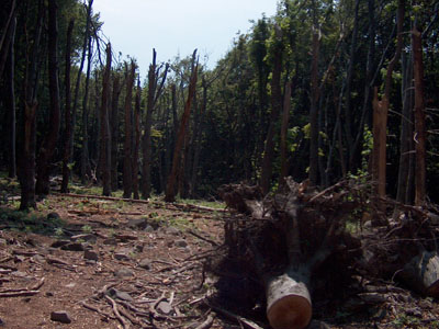 Visszamész a facsonkok és a tuskók között. El az obeliszk mellett. Innen mintegy húsz méterre az út másik oldalán már füves terület van. A hegy innen már lejtésnek indul, és nem takarják fák a kilátást. Nagyon szép ez a kilátás távolban a szlovák hegyekkel. Szlovák hegyek… Döbbenten megfordulsz. Most tudatosodik, hogy nem a hegy oldalára, hanem pont a tetejére esett. Visszamész a facsonkokhoz, a sérült lombkoronákhoz. Másként nézel rájuk. Vajon mennyin múlott? Egy méter? Kettő méter? Mennyi kellett, hogy elmenjenek a hegy felett? Ha túljutnak rajta, Szlovákiáig nem áll más hegy az útjukba. És talán ez az igazi tragédia.