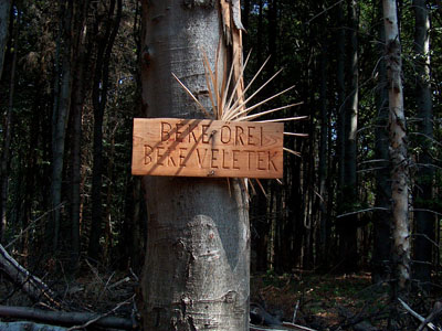 Magadhoz veszed a vizet, és a virágot is. Mert te nem katasztrófa turista vagy, a kegyeletedet mész leróni. Negyed óra séta után ismét egy tábla, balra emlékmü (Pomnik). A tábla után ott az erdészház, amely mellett a Szerencs patak ered. Ha akarod, friss vízre cserélheted, ami nálad van.Követed az utat az erdőbe, amerre a tábla mutatja. Ez már csak gyalog, vagy terepjáróval járható. De az erdő szép, nyugodt. Érdekes sziklákat is láthatsz. Főleg egy nagyot balra. Jó lehet innen a kilátás a Hernád völgyére. De most mész tovább, majd visszafelé. Útközben további táblák mutatják az utad.