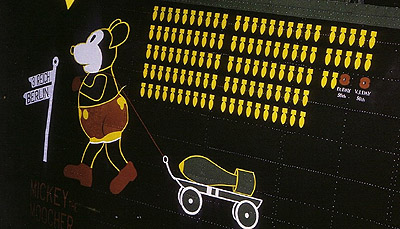 Az Avro Lancaster elnevezését a repülőgép orrán lévő „müvészi” festésről kapta, melyen maga a híres rajzfilm-figura „Mickey Mouse” elevenedik meg. Egy eredeti háború alatt készült fénykép tanúsága szerint „Mickey a kószáló”-t úgy ábrázolták, amint maga után húz egy bombaszállító kocsit. Ezen kívül még 112 bombasziluett bizonyítja a háborús részvételt is.