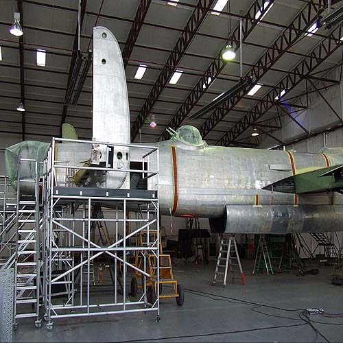 Mint már arról egy korábbi cikkben beszámoltunk, Angliában teljes felújítást végeznek el egy II. világháborús Lancaster nehézbombázón, amely a Battle of Britain Memorial Flight (BBMF) nevű bemutatókötelék egyik repülőgépe. A felvételek tanúsága szerint a munkafolyamat már igen előrehaladott állapotban van. Az elkészült fényképeken jól látszanak az eltávolított motorok belső tartószerkezeti elemei, valamint a gyári fémszínű osztott függőleges vezérsíkok, de még oldalkormányok nélkül. Az előzetes ütemterv szerint nemsokára következik az utolsó fázis, amikor összeszerelik, berepülik és lefestik a gépet.