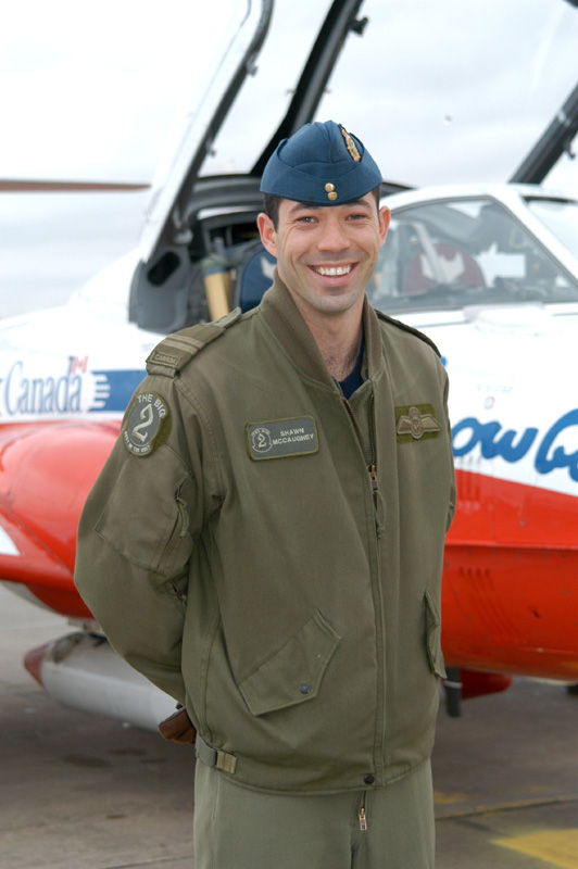 Shawn McCaughey százados a második évét töltötte a Snowbirds kötelékében, és a No. 2 géppel repült belső jobb kísérő pozícióban. A százados 2000-ben lépett be a légierőbe. Mielőtt csatlakozott volna a hadsereghez, civil diplomát szerzett a montreali Concordia Egyetemen, sőt polgári kereskedelmi pilótaengedéllyel is rendelkezett. 2003-ban a 2 Canadian Forces Flying Training School állományába került Moose Jaw-ba, ahol CT-156 Harvard II típuson oktatóként repült a NATO Flying Training in Canada Program (itt képzik a magyar pilótákat is) keretében. McCaughey százados oktatóként több mint 500 órát töltött a levegőben.