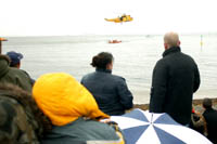 A meglehetősen rossz időjárás – erős lökéses szél, alacsony felhőalap, minimumlátás és szitáló eső – ellenére a több 10 ezer fős nézőközönség jól szórakozott. A repülőprogramok nagyobbik részét sajnos törölték, de magyar szemnek így is bőven maradt elég látnivaló.Elsőként a RAF Sea King helikoptere vízi mentést imitált, de az erős szél még a lenyügöző méretü helikoptert is meg-megdobálta. Második számként a katonai kiképzőgépek, a Tutor és Tucano tartott bemutatót eléggé spontán módon, előzetes koreográfia nélkül.Ezek után a várva várt Black Cats kötelék Lynx helikopterei mutatták meg, hogy számukra nincs lehetetlen. A nehezített időjárási viszonyok ellenére elképzelhetetlenül közel manővereztek egymáshoz, rotorlapátjaik szinte összeértek, milliméterre egyformán fordulóztak. Idén külön látványosságként szolgált a gépek új festése, oldalukon nagy fekete hiúzfejjel.Őket követte a második világháború idején gyártott PBY Catalina kecses repülése, majd egy civil tulajdonban lévő Hunter F.Mk 4. Nagy-Britanniában nagy hagyománya van az oldtimer repülésnek, több egykori félelmetes jet vadászgép ma magánkézben van. A Hunter könnyü vezethetősége és „alacsony” üzemeltetési költségei miatt nagyon kedvelt, több mint tíz darab repül belőle az országban.A Red Arrows elmaradhatatlan része az angliai repülőbemutatóknak. Idén a szokatlanul alacsony felhőzet közül hol felbukkantak, hol eltüntek, szinte a semmiből, meglepetésszerüen jelentek meg a különböző alakzatok, formációk.Később az ex-RAF-pilótákból összeállt, Extra 300-zal repülő The Blades kötelék mutatta be (majdnem) ugyanezt.Végezetül a Királyi Légierőnél most rendszeresített Eurofigter Typhoon alacsonyan végzett és erősen szükített fordulói még a repülés iránt érdeklődőket is meglepte.