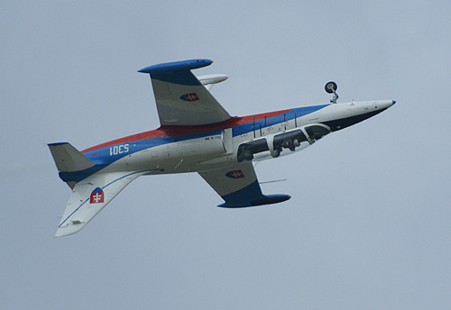 A dinamikus program – az előre kiadott plakátnak megfelelően – percre pontosan tíz órakor kezdődött meg egy L-39 Albatros felszállásával. A füstölővel felszerelt gyakorlógép az egykori Biele Albatrosy bemutatókötelék színezésében pompázott. A kecses gép repülése nosztalgikus érzésekkel töltött el, a sajnálatos módon megszünt kötelék ugyanis a kedvenceim közé tartozott. A pilóta szemmel láthatóan igyekezett mindent kihozni az Albából, a felhősödő háttér és a repülőteret övező erdőség ráadásul kiváló hátteret adott a világos festésü gép produkciójához. Leszállás után a gurulóúton a nézők előtt megállva a pilóta ismét bekapcsolta a füstölőt, látványosan befejezve magas színvonalú bemutatóját.