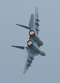 A bemutatót tartó MiG-29-es már átesett a modernizálási programon, erről a kabin mögötti pluszantennák, a módosított jelzőfények és a pilótafülke előtti „madárszeletelők” árulkodnak