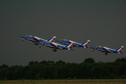 A dinamikus program záróakkordjának szánt Patrouille France bemutatókötelék gépeinek felszállását szó szerint beárnyékolta a repülőtér fölé húzódó hatalmas, fekete zivatarfelhő, melyből pár pillanattal később hirtelen szakadni kezdett az eső. A francia pilóták néhány áthúzást követően le is szálltak, míg a nézők maradék része a különféle sátrakban keresett menedéket. Amilyen gyorsan érkezett, olyan hirtelenséggel alább is hagyott az eső, majd váratlanul ismét rákezdett, így tréfálva meg a kimerészkedőket.