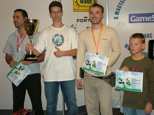 ...oly annyira, hogy komoly meglepetések is születtek. Mind a mondern vadászgép (MiG-29), mind pedig a második világháborús vadászgép (Bf 109) kategóriában az ifjú versenyzők kiváltották a tapasztaltabbak elismerését, hiszen a Bf 109 kategóriában a 12 éves Ungár Patrik, mint a verseny legfiatalabb résztvevője 7. helyezést ér el, míg Bardóczi Gábor, a tavalyi ifi kategória győztesen meg sem állt a második helyig a MiG-29 kategóriában, magamögé utasítva számos, nagyobb rutinnal rendelkező öreg rókát. A Magyar Honvédség pilótái is hozták formájukat, s úgy tünik, hogy stabilan tartják a 7-8 helyet, bár épp tavaly sikerült nekik a második helyet is megszerezni.