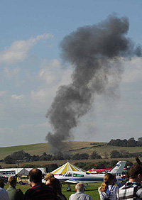 Tom Blairs DB707 jelzésü Hurricane-jával éppen egy fordulót fejezett be, miután nagy sebességü zuhanással, orral a földbe csapódott a gépe, amely egy jó darabon felszántotta a földet. A roncsban azonnal tüz keletkezett, amelyből sürü fekete füst szállt fel. A repülőgép szinte teljesen megsemmisült, darabjai pedig szétszóródtak. A katasztrófában a pilóta is életét vesztette, a helyszínre érkező rendőrök, mentők és tüzoltók már nem tudták megmenteni. Az eset pontban 15 óra 20-kor történt. A helyszín az A27-es úttól északra, a repülőtértől kb. 1,5 km-re volt. A földön szerencsére senki sem sérült meg. A repülési programot azonnal megszakították, de később tovább folytatták. Néhány gép végső tisztelgésül a „Man Missing in Action" formációt repülte, amelynek ezúttal szomorú jelentősége volt. A szemtanúkat is alaposan megdöbbentették a látottak.Tom Blairs nagyon tapasztalt repülőgép-vezetőnek számított, ugyanis eddig már több mint ezer repült óra volt a háta mögött. Ezenkívül rendelkezett még a légügyi hatóság által kiadott bemutatópilóta-jogosítvánnyal is. A 65 éves, II. világháborús repülőgép, noha veteránnak számít, a kora ellenére megfelelő müszaki állapotnak örvendett, továbbá érvényes repülési engedély is volt rá. A hasonló kategóriájú gépekkel különben sem lehet korlátlanul mürepülni. Ráadásul évente összesen is csak mintegy 10-15 órát töltenek a levegőben, tehát túlhajszolva sincsenek. A különös eseményre egyelőre nem tudtak megfelelő magyarázatot adni, de a vizsgálóbizottság már megkezdte a roncsok elemzését. A sussexi rendőrség pedig felkért mindenkit, hogy akik video- és fényképfelvételeket készítettek a helyszínen, sürgősen bocsássák a hatóság rendelkezésére, mert elősegítheti a nyomozást.