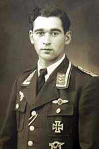 Fiatalon, a Luftwaffe pilótájaként, Dornier Do 217E-4 típusú repülőgépen összesen 120 hadmüveleti bevetést hajtott végre Anglia, a Szovjetunió és a Balkán felett. 1942 áprilisa és júliusa között 32 angliai küldetésen vett részt. Elsősorban bombázó, de ezenkívül aknarakó feladatokat is teljesített, miközben megfordult York, Sunderland és Middlesbrough fölött. 1942 júliusában azonban gépét lelőtték, mellyel csak egy rosszul sikerült kényszerleszállást tudott végrehajtani. Ennek következtében hat hónapra kórházba került, ám repülős pályafutása ezzel egy csapásra befejeződött. Érdemeit – sok társához hasonlóan – a vaskereszttel ismerték el, amelyből ő mindkét fokozatot megkapta. A háborút végül szerencsésen túlélte, így sikerült – 65 év után először, de ezúttal immár békésen – Angliába eljutnia.