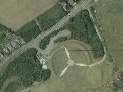 A felülről egy háromágú légcsavart formázó, térkövekből kialakított emlékmü közepén egy kőből megformált pilóta néz a mindig morajló tenger felé, arra, ahonnan annak idején százával érkeztek a német bombázók és vadászgépek
