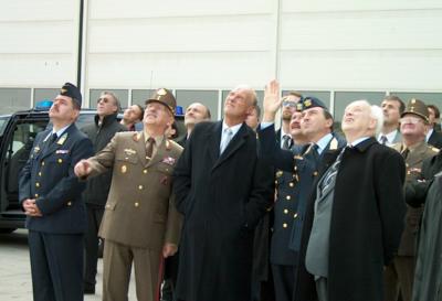 A katonai repülőtéren az uralkodót fogadta Fodor Lajos vezérezredes a Honvédelmi Minisztérium Honvéd Vezérkar fõnöke, Sági János dandártábornok a Légierő parancsnok első helyettese és Pintér Zoltán dandártábornok a Szentgyörgyi Dezső Repülőbázis parancsnoka. A díszszázad fogadása után rövid tájékoztatást kapott a norvég diplomáciai küldöttség és Mádl Ferenc a Magyar Köztársaság elnöke a bázis munkájáról, életéről majd közelebbről megismerkedhettek a hirös városban üzemeltetett repülőgépekről. A norvég királynak Pintér Zoltán dandártábornok, bázisparancsnok mutatta be a MiG-29-es vadászgép pilótafülkéjét és ismertette a gép technikai adatait. Horváth János mérnök alezredes a repülők (MiG-29 és L-39 Albatrosz) üzemeltetésének kérdéseit válaszolta meg a jelenlévőknek. A látogatók és a sajtó képviselői nemcsak a betonon, hanem a levegőben is megfigyelhették a MiG-29 repülési tulajdonságait.