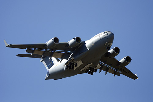 Látványos felvétel egy C-17-esről, mely éppen útban van új állomáshelye, az alaszkai Elmendorf légibázis felé. A függőleges vezérsíkon az AK jelölés már Alaszkára utal. A repülőgép – hét másik társával együtt – a Nemzeti Gárda állományába került. A régebbi és kisebb kapacitású C-130-asok kiváltására érkező gép bevethető légi szállítási, humanitárius és különleges hadmüveletekben egyaránt