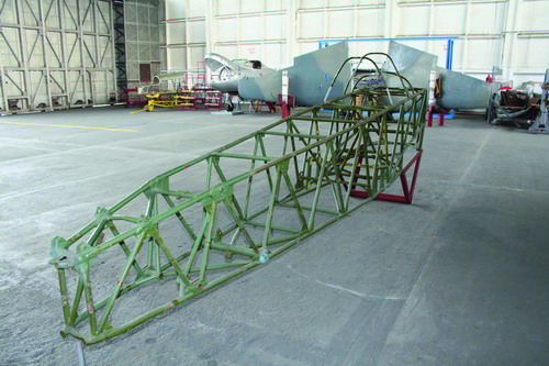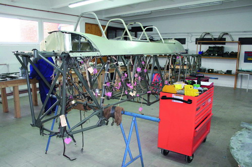 Eközben a hangárból a fütött mühelybe érünk, amelynek a közepén egy Jak–11-es acélrácsozata áll. Körülötte hatalmas asztalokon a gép különböző alkatrészei, darabjai hevernek, kis címkékkel megjelölve, hogy az adott alkatrész honnan származik. Mint megtudjuk, ez a Jak–11-es egy cseh építésü példánya, amely Egyiptomból származik. Viszonylag jó állapotban van, de még legalább fél évre és három ember munkájára van szükség ahhoz, hogy a gép ismét repülőképessé válhasson. Szerencsére Csehországból meg tudták szerezni a típus eredeti dokumentációját, így annak alapján történik a helyreállítás. Aprólékos, időigényes munka ez. De a végeredménynek olyannak kell lennie, hogy az minden tekintetben megfeleljen majd a tulajdonosnak és az érvényben lévő légügyi előírásoknak.