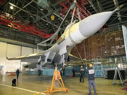 A beépített fegyverzet nem változott, a jobb szárnytőben a GS301-es 30 mm-es gépágyú található. A felfüggesztési pontok száma és helye is azonos, összesen 12 helyre lehet fegyverzetet szerelni. A szárnyvégeken lévő rakétaindító sínek helyére kerülhet a Hibnij aktív elektronikus zavarórendszer egy-egy áramvonalas konténere, ezenfelül a törzsvégen felül építhetők be az infracsapdaszóró kazetták. A MAKS-on látott gépről azonban mindezek hiányoztak. A póttartályok a szárnyak alatti középső csomópontokra szerelhetők, ezekben megtalálhatók az üzemanyagrendszer csőcsatlakozói.