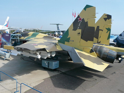 A Szu-35BM fegyverzete legnagyobbrészt azonos a többi vadászbombázó változatú Flankerével. Légi célok ellen az R-27/73/77-es rakéták vethetők be, a földi csapásmérésnél pedig a szabadon eső és televíziós irányítású bombák, valamint a H-29/31/59-es stb. rakéták. A MAKS-on néhány további fegyvertípus makettjét is elhelyezték a gépen és mellette, ezek a Klub szárnyas rakéták új változatai (lásd ARANYSAS 2007/11. szám) és az egyelőre csak AAM néven említett (talán ez lesz a K-100-as?) nagy hatótávolságú légiharc-rakéta. Az AKU-58-as indítóberendezésre egy adapter segítségével rögzített makett kétfokozatú, a gyorsítórakéta kinyíló rácsszerkezetü vezérsíkokkal lesz felszerelve, az "utazó"-fokozat hagyományos kormányzású. Az akár 300 km-ről is bevethető rakéta a HVA-célok (High Value Assets) megsemmisítésére szolgál, vagyis az ellenséges légi utántöltő és légtérellenőrző gépek ellen alkalmazhatják. Hogy fejlesztése hol tart, arról nincs semmi megbízható, lehet, hogy semmi sem lesz belőle, de az ellenkezője sem kizárt. Az is lehetséges megoldás, hogy Indiával közösen fejlesszék ki, ez esetben jobb az esély, mert a szükséges pénz egy részét így biztosíthatná a külföldi megrendelő.