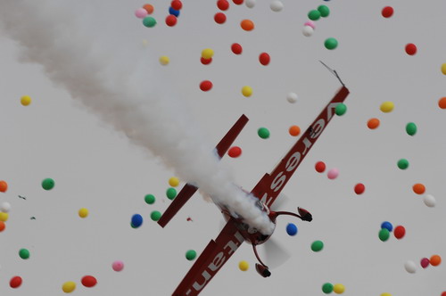 Az airshow egyik különlegessége, hogy a hazánkat képviselő Veres Zoltánt két társával, Jurgis Kairis litván és Skip Stewart amerikai mürepülővel együtt az a szakmai tisztelet érte, hogy a többi résztvevőtől eltérően felmentést kaptak a repülőbemutató alatt betartandó ötvenméteres alsó magassági korlát figyelembevétele alól, így akár a földtől pár centire repülve is szórakoztathatták a nagyérdemüt. Veres Zoli különleges látványossággal készült az idén, két darab öt méter átmérőjü ballon között fejjel lefelé átrepülve légcsavarjával átvágta a közte feszülő zsineget, ezzel négyezer színes lufit kiszabadítva a ballonokból.