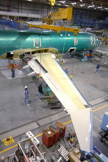 A Boeing cég rentoni gyárában felszerelték az amerikai haditengerészetnek (U.S.Navy) most készülő első P-8A Poseidon típusú repülőgép törzsére a jobb oldali szárnyat. Az amerikai repülőgépgyár szerelőszalagán a népszerű 737-800 típusú utasszállító repülő alapjaira épült katonai gépet, a P-8A-t szerelik össze.