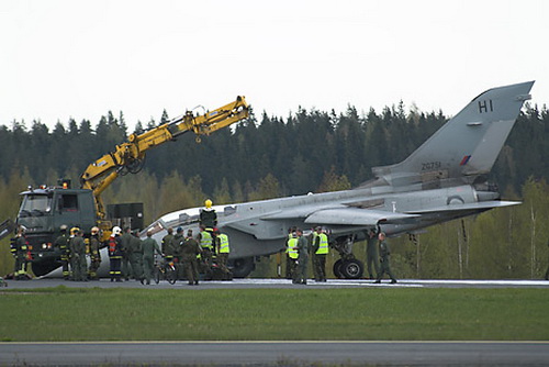 A gyakorlat alatt kisebb baleset történt az egyik brit harci géppel. Május 22-én az egyik leszálló Tornado F3 orrfutója összecsuklott a Rissalaban található légibázison. A személyzet két tagja nem sérült meg.