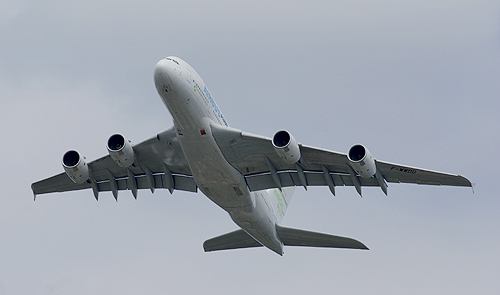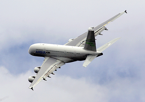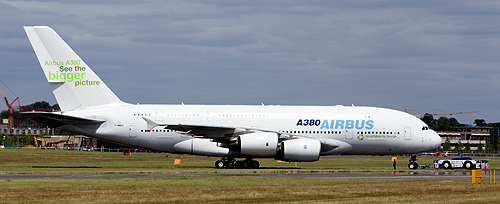 A nagy-britanniai Farnborough Airshow-n hangsúlyos szerepet kapott a környezetvédelem. Az európai repülőgépgyártó óriás, az Airbus cég egyik A380-as óriásgépe például zöld színű feliratokkal díszített vezérsíkkal volt megcsodálható a statikus soron, illetve a dinamikus bemutató alatt a levegőben is, ezzel jelezve a vállalat elhivatottságát a környezet megóvása érdekében. De vajon mi van valójában a látványos marketing akció mögött, hogyan is lehet egy ilyen kerozinfaló monstrum környezetbarát?