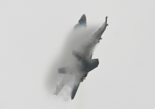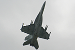 Egy kis kitérő: hála annak, hogy a Raptorral 2008-ban sem gyári bemutató pilóta, hanem a Légierő democsapata repül, még a sokat látott Farnborough-ban is, továbbá Traven kürjét a Super Horneten még az oroszokból is elismerést kiváltó elemek uralják, mintha átalakulóban lenne az amerikai katonai show-filozófia. Nem arról van szó, hogy odaát soha senki sem repült semmi érdekfeszítőt - elég csak az 1998-as Dale Snodgrass F-14D repülésére gondolni - de tény, hogy sok olyan manőverelem jelent meg az utóbbi években, amit eddig csak az oroszoktól - vagy még tőlük se - láthattunk. Az F-15E democsapata az idei évtől például a felszállást követően a meredek emelkedést megszakítva a gépét a hátára teszi, majd háton nagy negatív állásszöggel (!) gyorsul hosszú másodpercekig, egész addig, míg már komoly kondenzáció alakul ki a szárny alatt (felett). Innen kiforgatott gép leginkább olyan hatást kelt az ívelt szárnyvégekben meggyült gőz kiáramlása miatt, mintha füstölőket kapcsolt volna be. Nagyon látványos manőver...