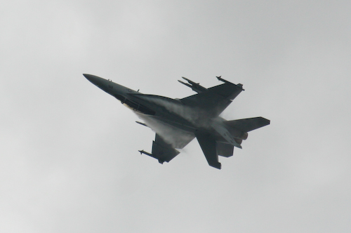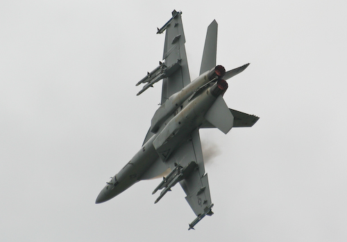 Visszatérve a Super Hornet-hez, a program egyszer sem ül le, látványos, de nagy tapasztalatot igénylő manőverek sora váltogatja egymást. Az orsót követve a gép rövid vízszintes sebességgyüjtés után függőleges manőverbe kezd és egy háromnegyed bukfenc után máris kezdetét veszi az első szakmai szemmel is érdekes mozzanat. A közel 45 fokos leszálló ágban talpára állított gépet a pilóta egy intenzív mozdulattal 70-80 fokos állásszögig húzza.Ezt a földről csak becsülni lehet, de tény, hogy a gép a haladási irányával bezárva érte el ezt a szöget, közben sem emelkedett, sem süllyedt. Ezután azonban ismét egy intenzív mozdulattal az orra nyomott gép vízszintesen gyorsulni kezdett. Látható, hogy mind a kereszttengely körüli szögsebesség, mind a kritikus állásszög körüli kormányozhatóság terén a Super Hornet komoly potenciállal rendelkezik.
