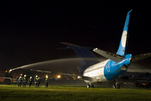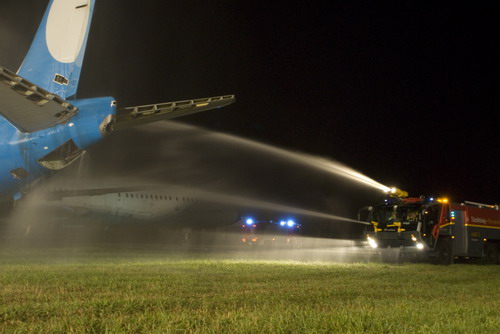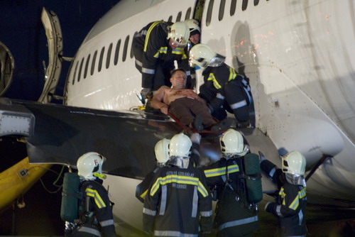 Nagyszabású, teljes kényszerhelyzeti gyakorlatot tartott csütörtök hajnalban a Budapest Airport (BA), a Repülőtéri Katasztrófavédelmi Igazgatóság (RKI) és több más hatóság. A gyakorlat kerettörténete szerint egy Boeing 737-200-as utasszállító sérült futóművel landolt Ferihegyen. A 40 utast és ötfős személyzetet szállító repülő összeütközött egy Tu-154B teherszállítóval, a szárnyából kifolyt és lángra lobbant az üzemanyag.