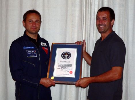 Veres Zoltán műrepülő Európa bajnokunk szokásához híven idén is tartogatott különleges attrakciót a műrepülés iránt érdeklődőknek. Szeptember elején Gulyás Kiss Zoltán kaszkadőr barátjával készült egy nem mindennapi produkcióra, ami reményeik szerint a Guiness Rekordok Könyvébe is bekerül.